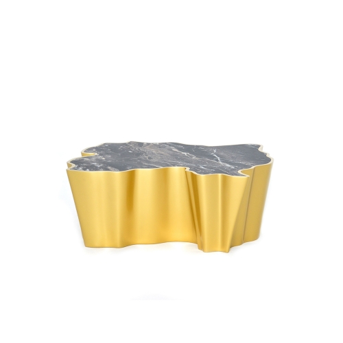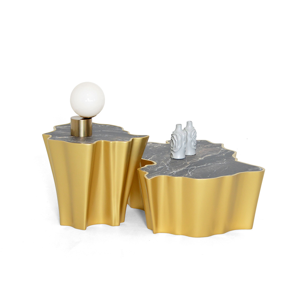 High-End Wave-Design Nesting Side Tables with Marble Top and Gold Finish for Luxury Interiors