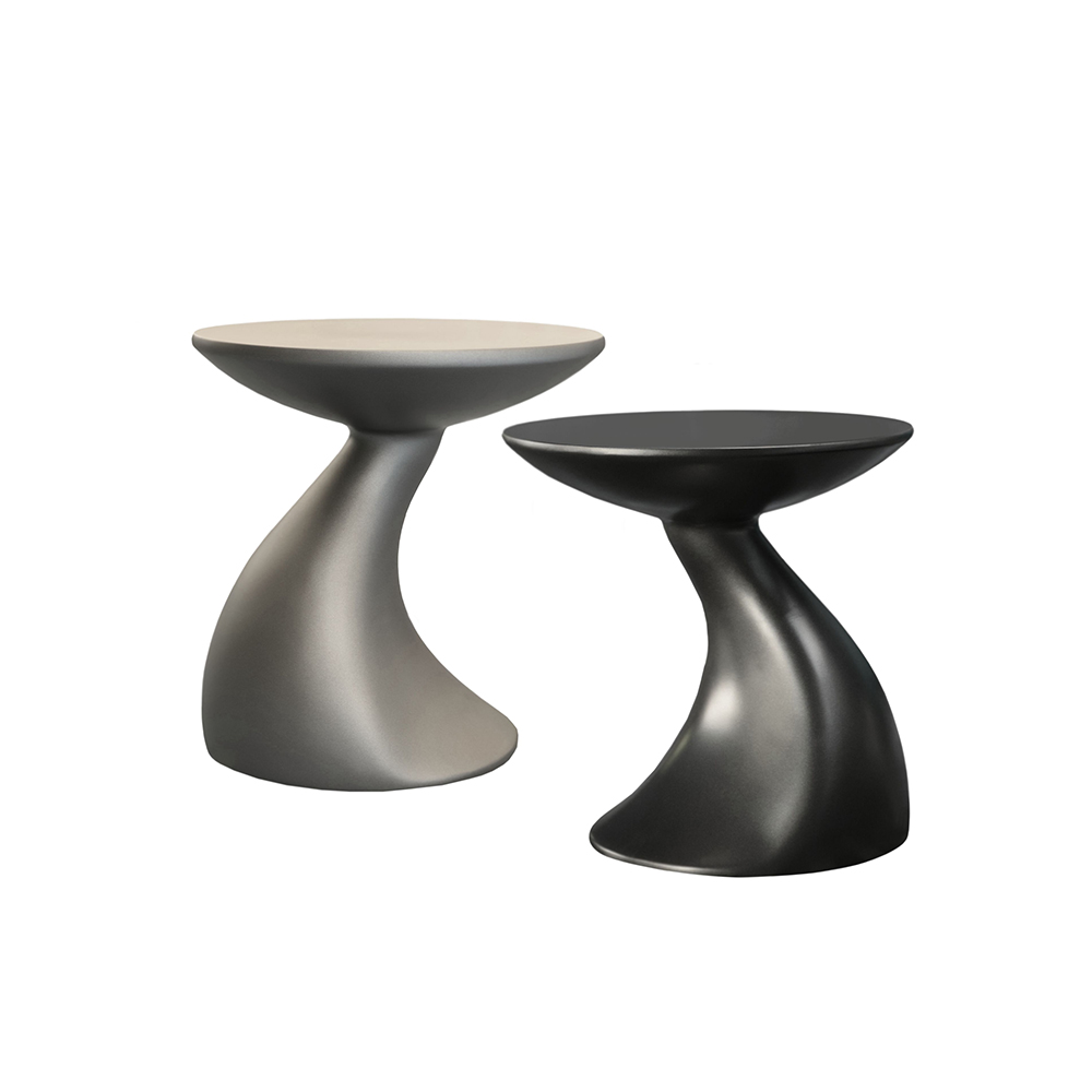 Minimalist Curved Accent Table with Fiberglass Construction and Metal Lacquer