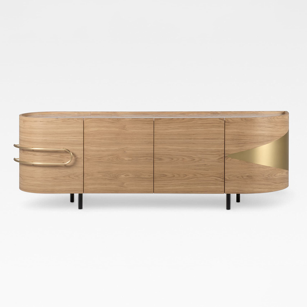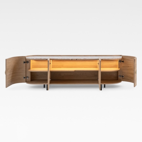 Minimalist Light Oak Sideboard with LED Lighting and Hidden Storage Compartments