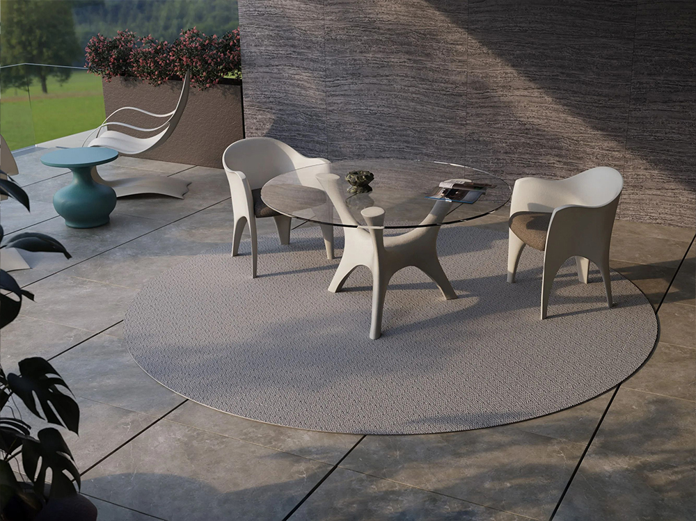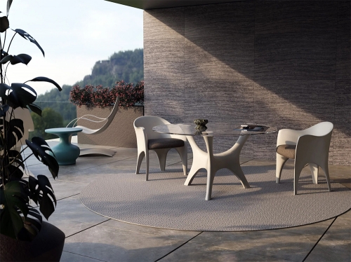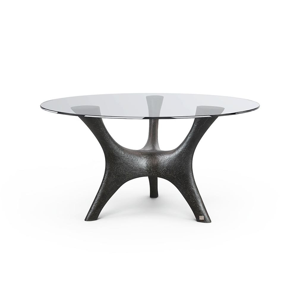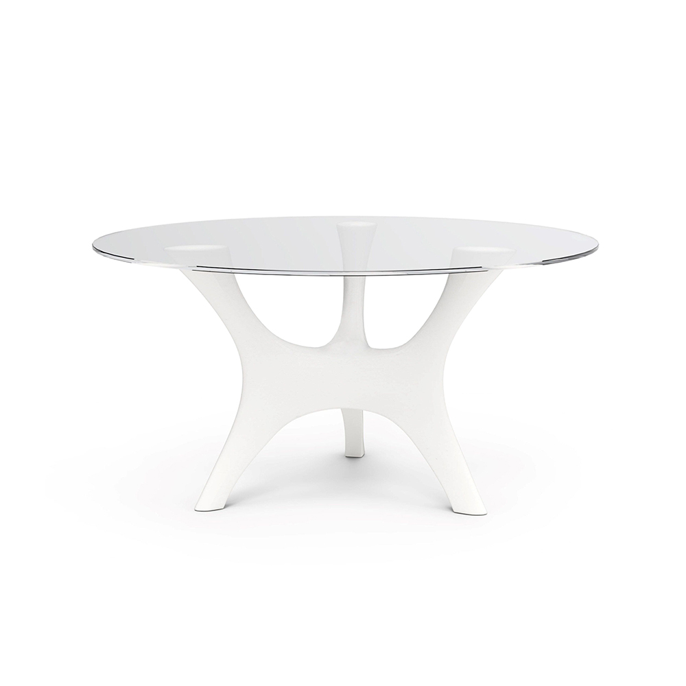 Sleek Sculptural Dining Table with Fiberglass Frame and Glass Top for Modern Decor